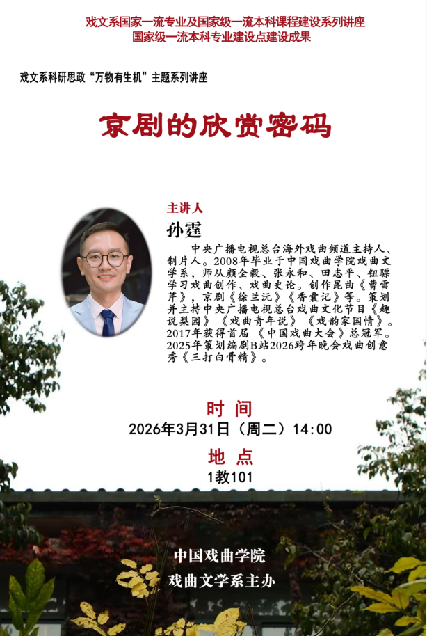 • 2026.03.26中國戲曲學院2026年碩士研究生招生復試考試安排表